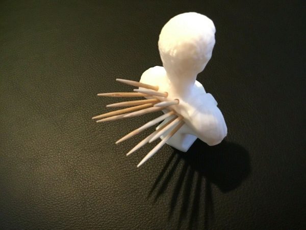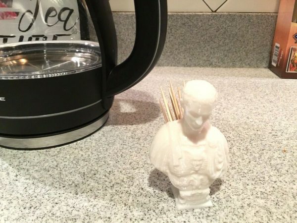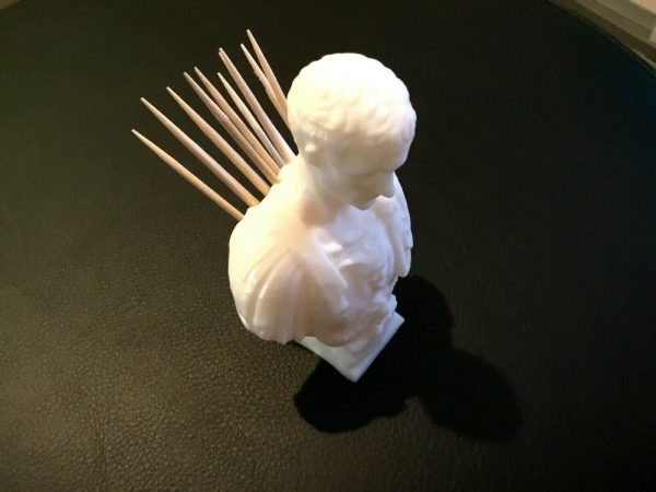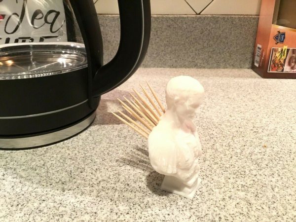 Feeling like Brutus today? Take a stab at Julius! Store your tooth picks with style on your desk top, kitchen, dorm or elsewhere into the holes on the back of this great piece.