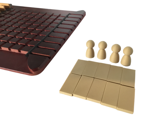 - Pawns you will receive one of each color (1 Brown 1 Light Brown 1 Red 1 Black)